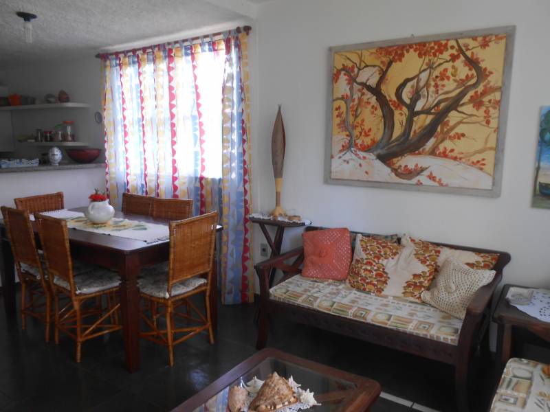 Descrições: sala estar e jantar cozinha americana ,spaziosa lavandaria com banheiro,uma suites mais um quarto.varanda,em cima dois suites. mobiliada. otimo condominio direito na praia privativa,area de lazer seguranza 24 horas.